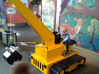 Duncan was really excited about the digger this time! The controls are a little heavy for him, but with some help, we were able to pick up the bean bags with the scoop.