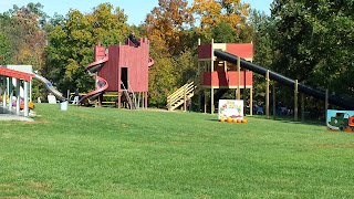 One of the kids' favorite are these tunnel slides that are perched on a hill. Once you come out of the tunnel, you still get to slide down the hill on the plastic!